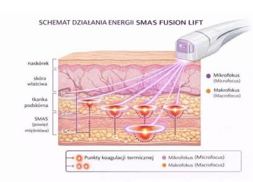 Energia ultradźwiękowa przechodzi przez powierzchnię skóry bez uszkodzenia naskórka i skupia się na określonej głębokości powodując lokalne podgrzanie tkanek nawet powyżej 60 st co inicjuje proces regeneracji i remodelingu kolagenu.